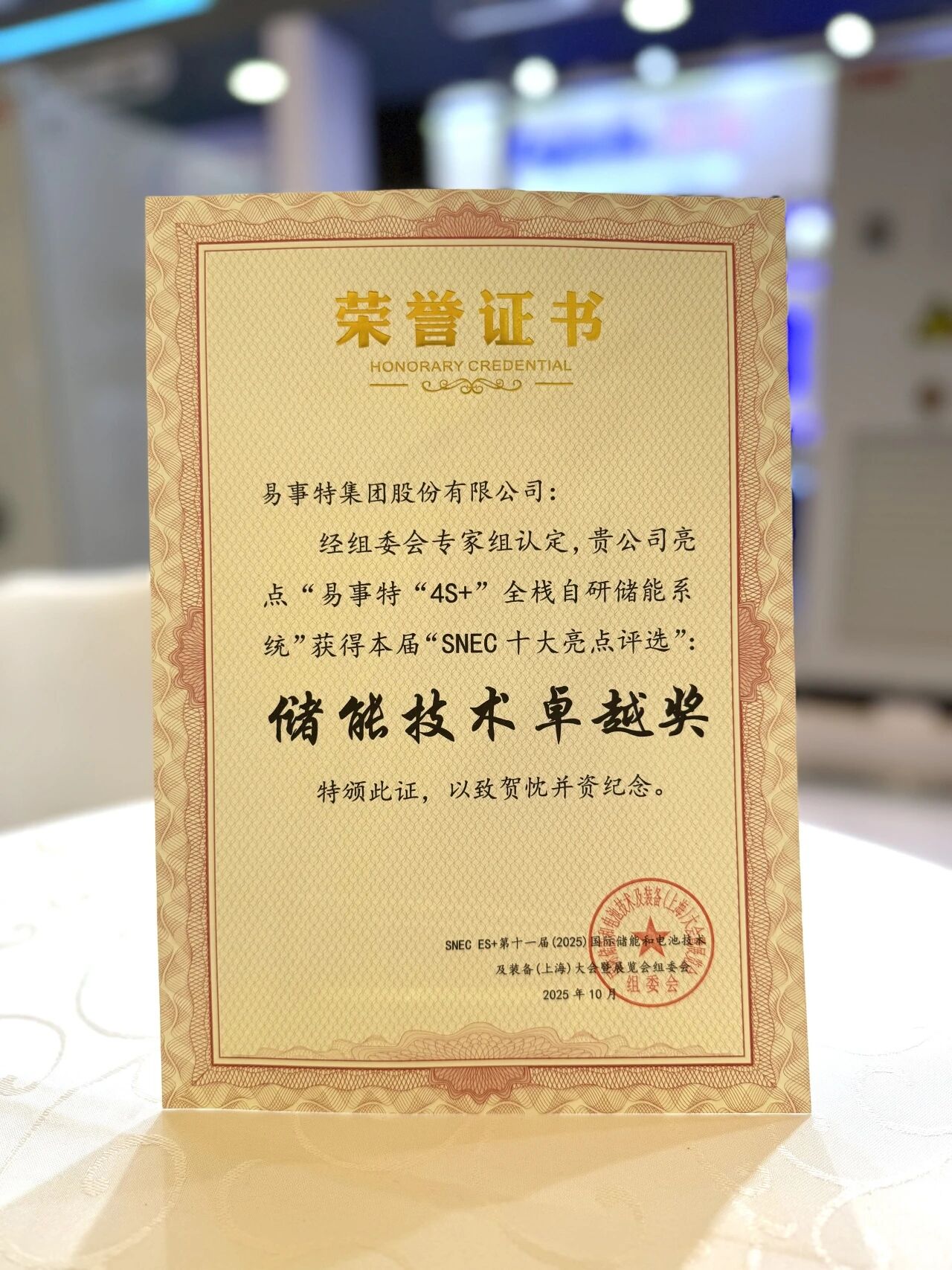 喜訊!易事特榮膺SNEC ES+十大亮點 “儲能技術卓越獎”
